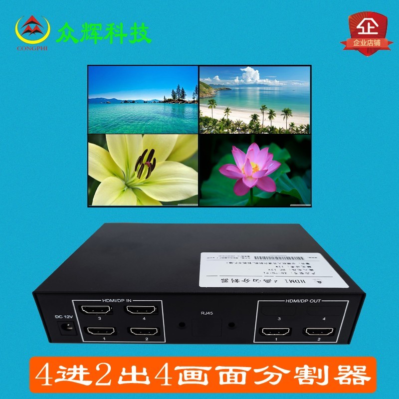 1進(jìn)4出豎屏拼接器 2臺3電視顯示90度旋轉(zhuǎn)盒